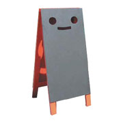 A型ボードの片面に、笑顔が抜き型されたとても個性的なメニューボードです。